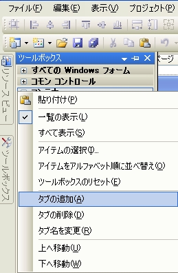 ・ツールボックスよりタブの追加を選択します。